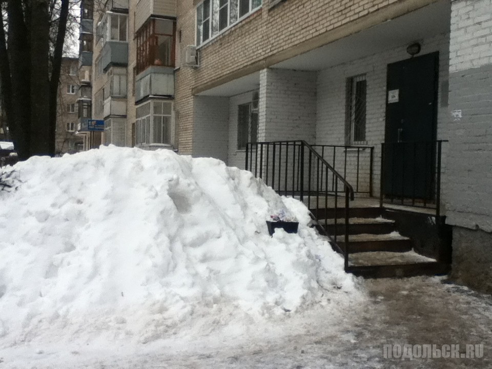 Уборка снега по-подольски. Вход в допофис МУП "СЕЗ". 1 февраля 2017.